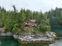 View FB443773 Echo Bay Market ReportWatch the whales from the deck of this beautiful oceanfront residence overlooking Cramer Passage in the heart of the Broughton Archipelago. The classic west-coast chalet-style home features vaulted ceilings in the main living space, with a wall of windows looking out at the views and accessing onto the wood deck that spans the front of the home. The main floor includes the open living space incorporating the living room, dining area and kitchen, one spacious bedroom with ocean views and two 3-piece bathrooms.