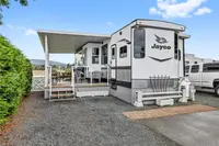 Welcome to Surfside RV Resort — a truly unique, gated oceanfront retreat in the charming seaside town of Parksville on Vancouver Island. This exceptional vacation property features a beautifully appointed 1-bedroom, 1-bath fixed trailer built in 2023, fully furnished and thoughtfully equipped with all the modern comforts you need. A large covered patio with glass railings, complete the picture.
