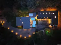 Patio area with outdoor kitchen and hot tub and double garage for daily drivers. Fantastic detached garage complex with 4 bays (including overheight bay with car lift), workshop and loft with lounge area/gym, skylit studio and caretaker/nanny suite. Not a car collector?