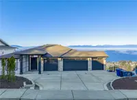 Exceptional residence in prestigious community of North Nanaimo, set on rare 13,000+ sq ft lot w/ breathtaking views of Georgia Strait & snow-capped mountains from all three levels. Main level features soaring ceilings up to 11 ft, complemented by 9 ft ceilings on upper and lower floors. Chef-inspired kitchen showcases quartz countertops, backsplash, quality appliances, and seamless flow to expansive outdoor deck—perfect for enjoying the views.