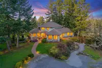 The serene grounds include mature landscaping, fenced garden, greenhouse, built-in BBQ, hot tub, & drip irrigation. 3 bedrooms and a full bath upstairs. Highlights include vaulted ceilings, generator ready, double garage with workshop & a private 1-bedroom suite above the garage with its own entrance, laundry & deck.