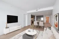 Experience Elevated Living in the Sky at Dockside Green by BOSA. This stunning 2-bedroom, 2-bathroom sub-penthouse offers panoramic views of the city skyline, ocean, and mountains — all from your expansive 179 sq ft balcony. Inside, the open-concept layout features a gourmet kitchen with a quartz island, gas range, and custom cabinetry — ideal for both daily living and entertaining.