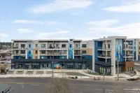 This second floor condo features luxury vinyl plank flooring, quartz countertops, soft-close cabinetry, LED lighting, triple pane windows, heat pump for heating and cooling, and energy recovery ventilation for year round comfort. The open concept floor plan features a spacious primary bedroom with ensuite, a second bedroom featuring a dual entry bathroom, a private balcony with ocean and mountain views. Included is one secured underground parking stall with EV charging, additional storage, secured bike storage, and secured entry.
