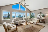 A patio off the kitchen offers outdoor dining, and a second balcony extends off the primary bedroom where you can watch epic sunsets. The downstairs layout easily converts to a 2 bedroom accessible in-law suite with a kitchenette, perfect for multi-generational living, with its own separate entrance & a garage access. Just a short stroll from the main house is the bright 986 sf cottage - so versatile - gym, art studio, office or extra space for family!