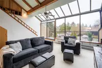 Royal Oak’s best value in loft-style living—1,276 sq ft of light-filled space at a price rarely seen in this submarket. This 2BD/2BA suite in Royal Estates offers vaulted ceilings, panoramic skylights, and a full wall of glazing opening to an East-facing patio spanning the length of the unit—ideal for morning sun exposure and passive natural light. Unique two-level entry enhances privacy and flexibility.