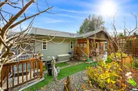 Walk past the pergola & lattice to front door-access with long driveway at the back of property to a double garage. Fully fenced, RV hookup and parking. Open floorplan features vaulted ceilings, European kitchen with embellished maple cabinets with island, granite countertops, pantry with Lee Valley pull outs, corner pull outs, steam oven, barista appliance, propane cooktop, recycling bins, built in oven and custom lighting.