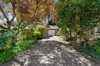 Gorgeous French glass doors lead into the den with a walkout to the beautifully-tended & maintained U-shaped garden that surrounds the back of the home, for abundant outdoor living spaces on level lawns with a very private perimeter for relaxing/entertaining. Large garage has space for a workshop, the water purifying system and storage. New roof & gutters in 2023 and new skylights.