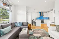 View Lyall St Market ReportThis ground-floor 1BR corner unit features 9' ceilings, hardwood floors, and premium Fisher & Paykel appliances including a gas range. The northeast corner position offers a private exterior entrance and a generous patio perfect for morning coffee. Built to last with steel & concrete construction and a metal roof, the unit also features a heat recovery system for year-round comfort — heat and hot water are included in strata fees.