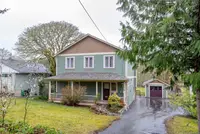 Originally built in 1922 major renovation in 1999, the home offers an inviting open-concept layout featuring a spacious kitchen, gas stove, and bright dining area. The living room, complete with cozy wood stove, overlooks a beautiful backyard. Main floor also has 3-piece bath and laundry.