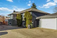 Tucked well back from the road & nestled behind another home, this quiet 2500sqft+ 5-6bdrm, 3bth two level residence offers flexibility & value with a 3bdrm mortgage helper. The bright upper level features hrdwd floors, new carpet in 2 large bdrms, a generous primary w/ensuite, & a sun-filled living room w/feature FP. Lower offers great ceiling height, updated spacious 3bdrm suite with new kitchen, flooring & bath vanity Jan 2025.