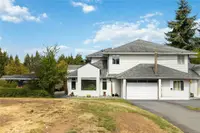 Living rm also w/oak laminate floors & bay window, is awash in natural light. 2pc powder rm & laundry rm + large garage & plenty of storage. Up: Primary bedroom has a 4pc ensuite w/tub & separate shower, 2 more generous bedrooms both w/uplifting views of the neighbouring Sooke Hills & 4pc main bathroom.