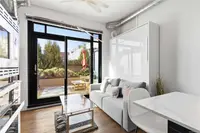 Thoughtfully designed for comfort and livability, this freshly painted unit features 10 ft ceilings, hardwood floors, quartz countertops, GE Loft Series appliances, and in-suite laundry. The south-facing 12' x 15' patio is a rare bonus, with only a few units offering this larger outdoor space. Sold fully furnished with a new queen Murphy bed and mattress, TV, coffee maker, patio furniture, BBQ, umbrella, propane heater, plus linens, towels, and kitchenware, it is a true turnkey opportunity.