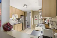 Enjoy this updated, west facing condo, warm with afternoon sun filling the large balcony and living room. Conveniently located very close to Northtown Mall, shopping, dining, and bus routes. With 2 spacious bedrooms, this quiet unit also has in-suite laundry.