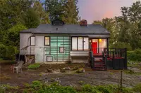 Set on a quiet and expansive lot, this enchanting 1948 character home is surrounded by lush gardens, blooming rhododendrons, and a beautiful collection of mature fruit trees. The fully fenced property offers a serene setting with gentle sunlight throughout the day, a decorative pond, and several charming outbuildings including a potential studio, workshop, garden sheds, and greenhouse.