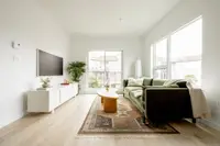 Gourmet kitchen features quartz countertops, custom feature wall, matte black hardware & contemporary stainless-steel appliances. Primary includes large walk-through closet and ensuite with double sinks. Enjoy the many amenity spaces Central Block has to offer; enjoy stunning ocean views from the rooftop terrace, relax in the gardens or take advantage of working from home in our exclusive co-working area.