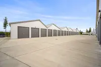 Each unit is heated, separately metered, and roughed in for a future bathroom. A rear access door adds convenience, while the mezzanine provides an additional 231 sq ft—perfect for storage, office use, or organizing tools and inventory. The facility offers secure gated access, ample hose bibs, and an RV sani-dump for owner use.
