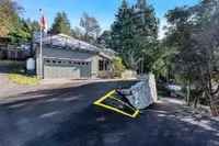 Step onto the expansive deck with glass railings, awnings and a built-in hot tub to soak in the views. A private paved driveway, professionally engineered retaining walls, an attached double garage, and exceptional boat/RV parking complete this private, tranquil property, offering ample storage.