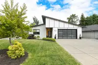 Tucked away in a peaceful cul-de-sac in Courtenay, this beautiful 5 year old rancher offers the perfect blend of comfort, style, and privacy. The home features soaring 15-foot vaulted ceilings that create an airy, open-concept feel throughout the main living space. The heart of the home is the open kitchen, designed for both functionality and entertaining.