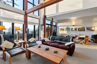 This three-bedroom, three-bathroom home features an open-concept layout with fir post-and-beam accents and propane fireplaces. Floor-to-ceiling windows in the main living area and primary bedroom frame panoramic ocean vistas, while expansive decks with glass railings. Part of The Ridge’s exclusive two-building development, the property offers spacious condominiums designed for comfort and style.
